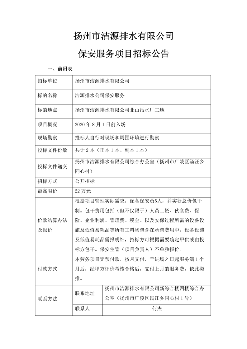潔源排水公司保安服務招標文件(北山污水廠工地).docx
