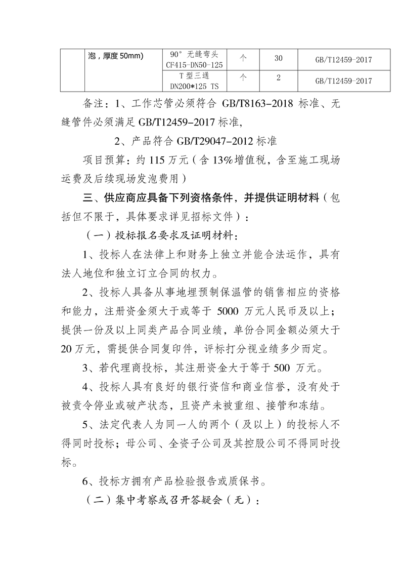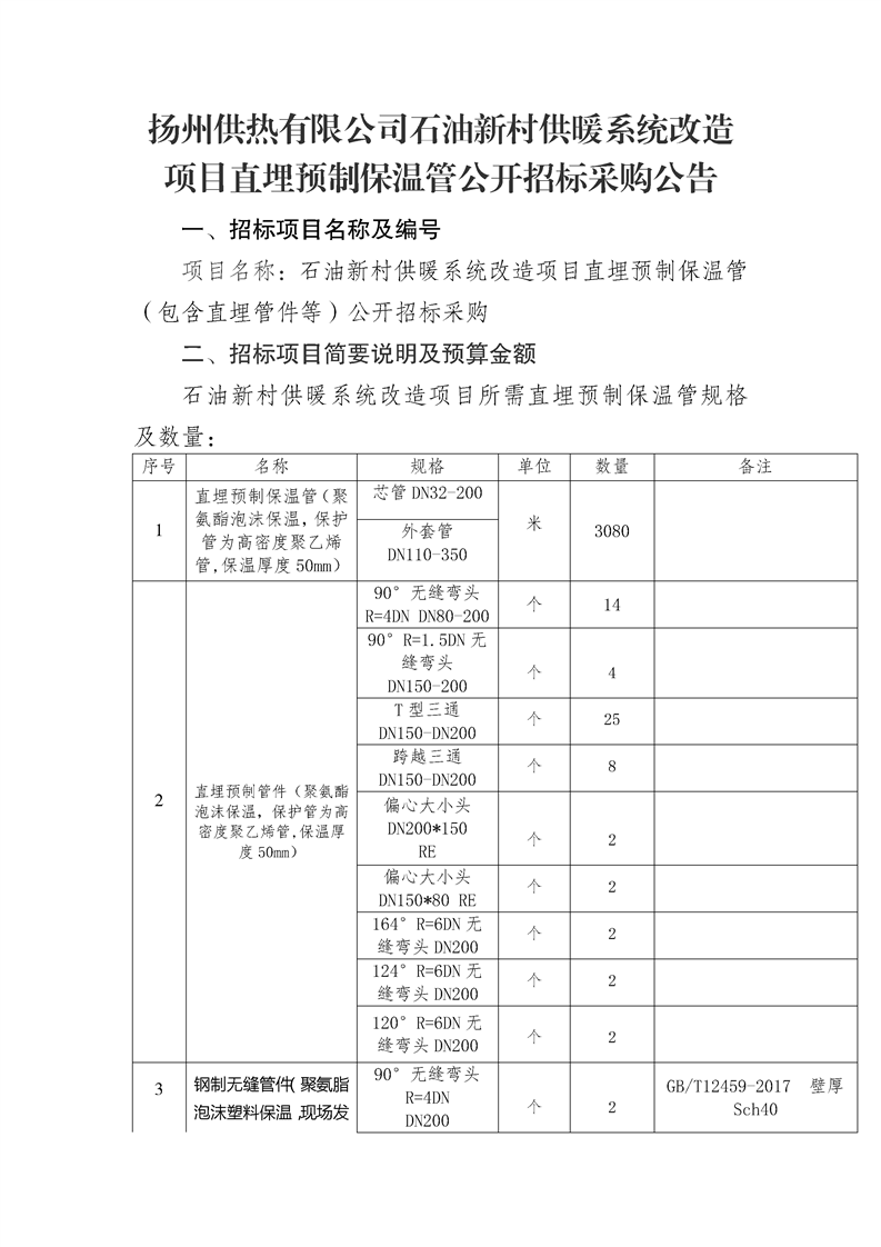 揚州供熱石油新村供暖系統(tǒng)改造直埋預制保溫管招標文件.docx