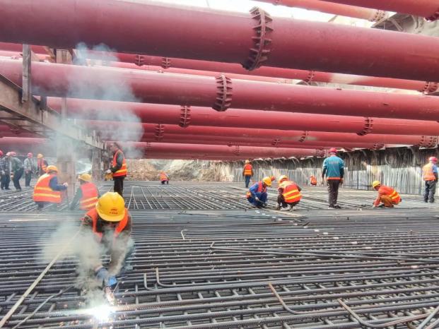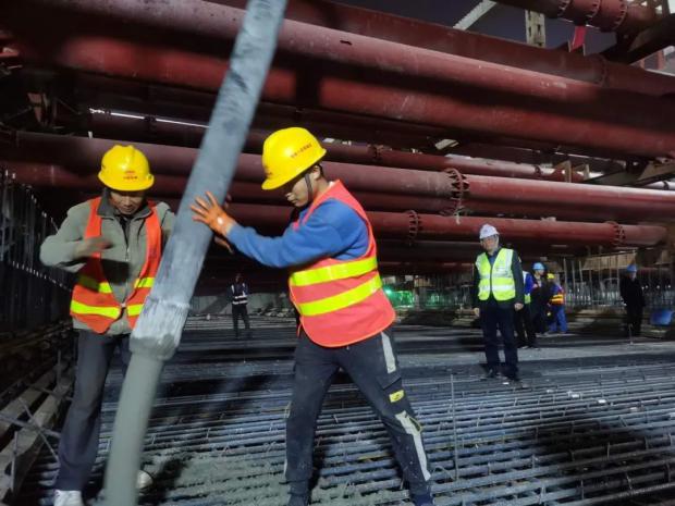 為保證首塊底板優(yōu)質(zhì)高效完成澆筑,項目部高度重視施工安全和工程質(zhì)量,并充分做好施工前各項準備工作。一是確保項目管理人員和作業(yè)人員安全、技術(shù)交底到位;二是落實領(lǐng)導(dǎo)帶班制、旁站制及三檢制,嚴把混凝土原材料質(zhì)量關(guān),澆筑過程中技術(shù)人員全程盯控,嚴格按照施工工藝施工,實現(xiàn)質(zhì)量控制目標;三是安全員從過程上嚴格監(jiān)督安全隱患,堅持早發(fā)現(xiàn)、早報告、早解決,做好安全防范工作。