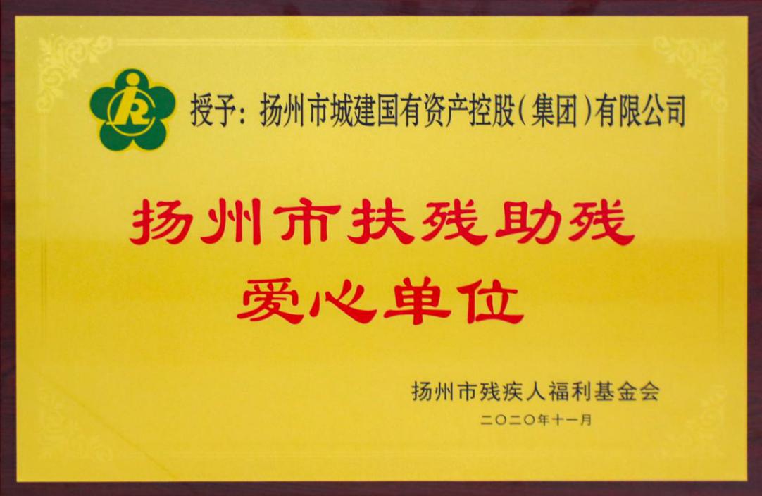12月2日,在第29個“國際殘疾人日”到來之際,城控集團(tuán)被揚(yáng)州市殘疾人福利基金會表彰為“2020年扶殘助殘愛心單位”,這是城控集團(tuán)在履行社會責(zé)任、關(guān)愛弱勢群體工作中獲得的又一項榮譽(yù)。
