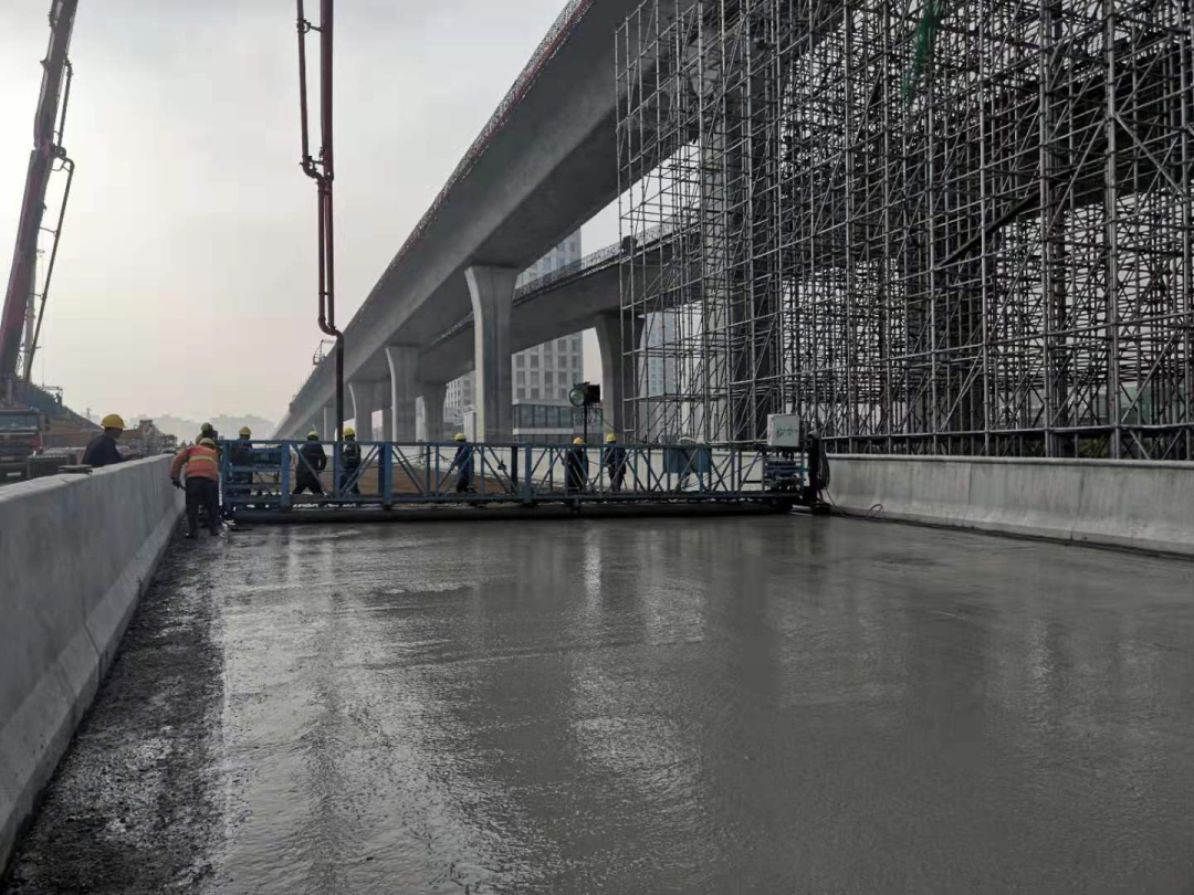 橋面混凝土鋪裝的順利完成,鼓舞了全體參建人員的士氣,橋梁工程將全面轉(zhuǎn)入瀝青鋪裝層施工和后續(xù)伸縮縫、交安、照明等附屬工程施工。