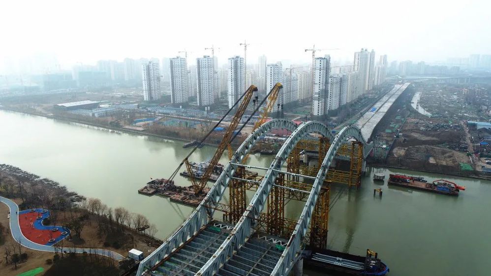 1月27日下午,萬??焖俾房缇┖歼\(yùn)河大橋拱肋全部合龍!這個(gè)春節(jié),揚(yáng)州又多了一處可以遠(yuǎn)眺的風(fēng)景。