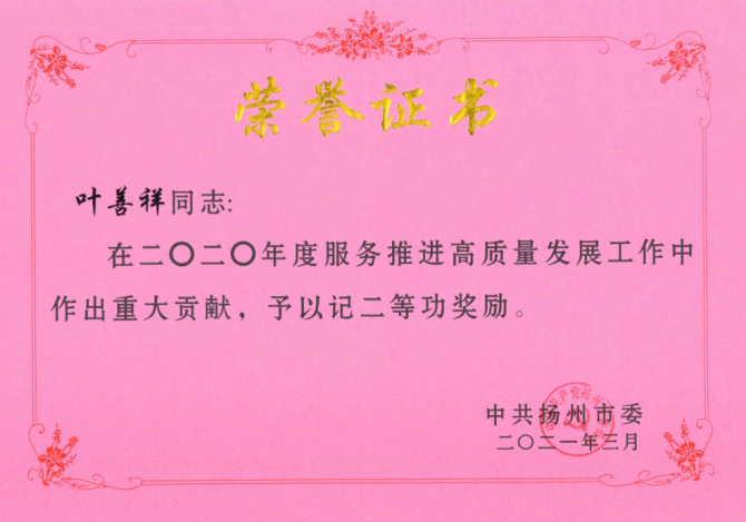 3月31日,在全市高質(zhì)量發(fā)展總結(jié)表彰大會(huì)上,城控集團(tuán)被表彰為2020年度市級(jí)機(jī)關(guān)績(jī)效考評(píng)“一等等次單位”,這是集團(tuán)轉(zhuǎn)型發(fā)展以來(lái)連續(xù)四次、歷史第七次獲得該項(xiàng)殊榮。集團(tuán)黨委書記、董事長(zhǎng)葉善祥榮立二等功。