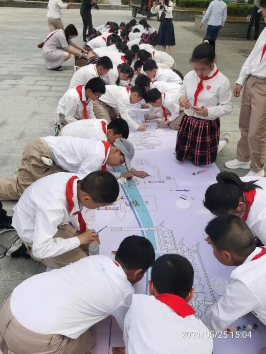 在雄壯的國歌中,活動徐徐拉開帷幕。揚州軍分區(qū)護旗隊,高舉國旗正步入場,并將國旗傳遞給少先隊員代表。隨后廣場響起清亮的少年先鋒隊隊歌:“我們是共產(chǎn)主義接班人,繼承革命先烈的光榮傳統(tǒng)......”,錚錚歌詞、響徹全場,回憶青春、心潮澎湃。最后,資產(chǎn)公司、廣陵消防救援站、團工委、東關(guān)街道婦聯(lián)等單位代表共同在噴繪上進行沙畫作業(yè),表達心中對建黨百年的衷心祝愿,少先隊員們也用手中彩筆描繪東關(guān)錦繡風(fēng)光。