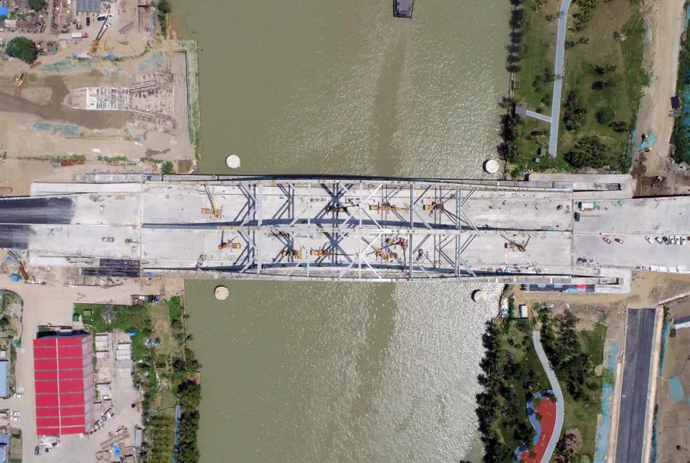 跨京杭運河大橋是萬福快速路工程重難點及控制性節(jié)點工程,施工難度大、精度要求高,決定著整個工程關門工期。施工過程中涉及的鋼棧橋施工、深基坑施工及上部結構吊裝均為超過一定規(guī)模的危險性較大的分部分項工程,施工安全風險高。為確保按期完成,錢俊多次組織召開專題推進會,倒排工期,掛圖作戰(zhàn),制定詳細的施工計劃,出現(xiàn)偏差及時分析并修正調(diào)整;同時,加強與海事、航道、船閘等部門的對接協(xié)調(diào),確保鋼構件及時進場、及時封航吊裝。施工期間,每天安排專人對施工部位進行巡查,檢查措施落實情況,針對發(fā)現(xiàn)的問題及時組織各方商討最佳解決方案,優(yōu)化施工工藝。在全體參建人員的共同努力下,2021年1月27日,跨京杭運河大橋拱肋全部合龍;2021年4月16日,跨京杭運河大橋橋面板合攏......目前,萬福快速路工程正按照既定計劃順利推進,工程形象進度完成率近90%。