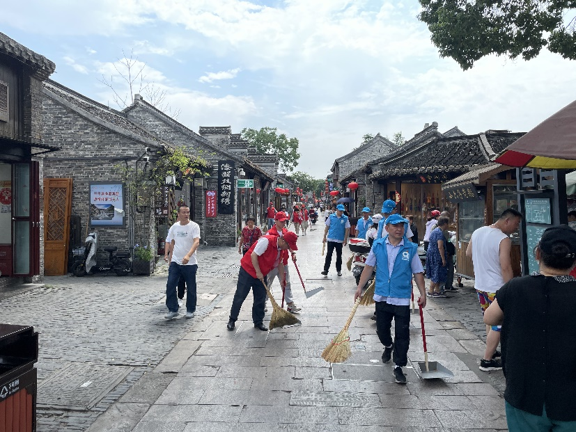 共建活動(dòng)開始后,所有黨員合并隊(duì)伍,并分成兩隊(duì)。其中一隊(duì)帶著掃把、簸箕、夾子、垃圾袋,對(duì)東關(guān)街沿街進(jìn)行清掃,不錯(cuò)過一張紙屑、一個(gè)煙頭、一片落葉;另一隊(duì)的黨員則是走訪沿街商鋪的用戶,詢問用戶商鋪中是否存在用水問題,同時(shí)對(duì)沿街水管進(jìn)行測(cè)漏檢查以及對(duì)消防設(shè)施進(jìn)行檢查維護(hù)。