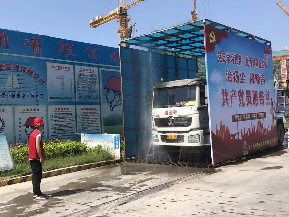 活動(dòng)中,黨員志愿者兵分兩路出發(fā),一處向周邊群眾和施工作業(yè)人員分發(fā)宣傳我公司為保護(hù)城市生態(tài)環(huán)境底色開展的一系列揚(yáng)塵降噪舉措;另一處志愿者在項(xiàng)目出入口處指揮檢查進(jìn)出車輛沖洗情況,嚴(yán)禁拖泥帶污車輛駛出場(chǎng)外,影響周邊環(huán)境衛(wèi)生,造成城市道路污染。目前我公司在建項(xiàng)目所有建筑工地均增添灑水降塵設(shè)施,工地實(shí)施6個(gè)100%治理標(biāo)準(zhǔn),即:施工現(xiàn)場(chǎng)圍擋率、工地物料堆放覆蓋率、路面硬化率、車輛沖洗率、濕法作業(yè)率、運(yùn)土車輛密閉率均達(dá)到100%。隨后,黨員志愿者們?cè)陧?xiàng)目負(fù)責(zé)人的帶領(lǐng)下見證了“智慧工地”系統(tǒng)和BIM-VR安全教育系統(tǒng)在實(shí)際工作中的應(yīng)用,“智慧工地”的運(yùn)用實(shí)現(xiàn)了隨時(shí)隨地可對(duì)項(xiàng)目安全、質(zhì)量、揚(yáng)塵防控及進(jìn)度等各方面的全覆蓋無死角管理。大家在感慨國家科技水平日新月異進(jìn)步的同時(shí)也增強(qiáng)了學(xué)好本領(lǐng)多為群眾辦實(shí)事的思想自覺和行動(dòng)自覺。