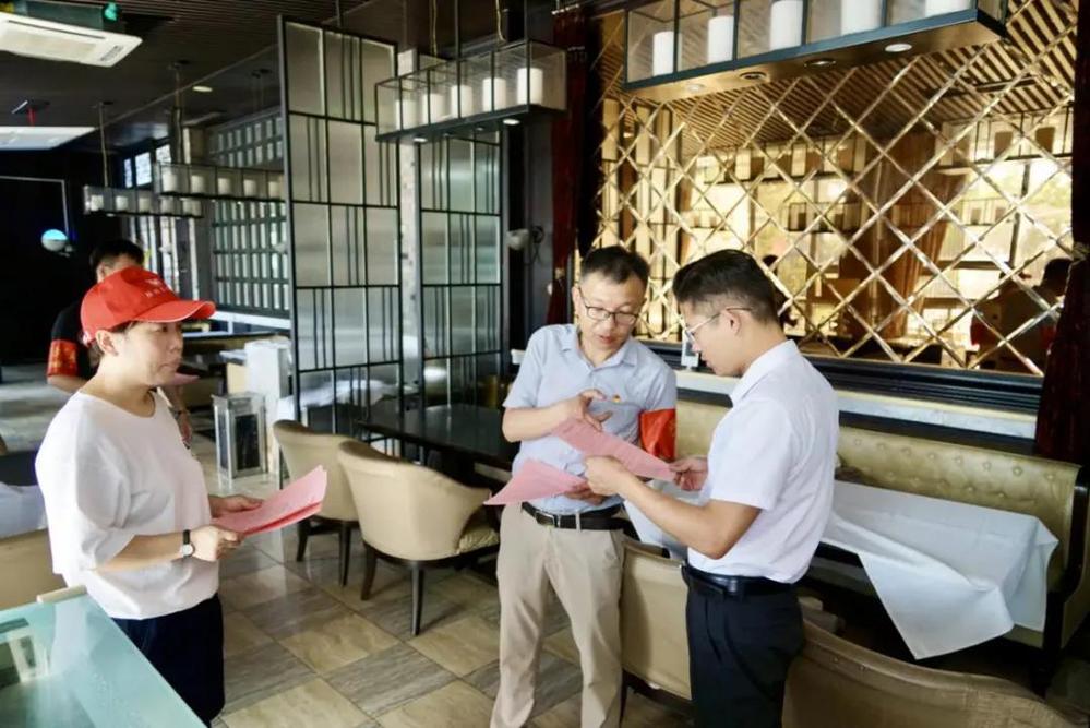 黨員志愿者們兵分兩路,一部分黨員志愿者在演練現(xiàn)場幫助工作人員進(jìn)行現(xiàn)場引導(dǎo)與疏導(dǎo),另外一部分黨員志愿者則前往街區(qū)內(nèi)的各家餐飲門店,上門進(jìn)行消防安全知識宣傳講解和消防安全知識宣傳資料的發(fā)放。