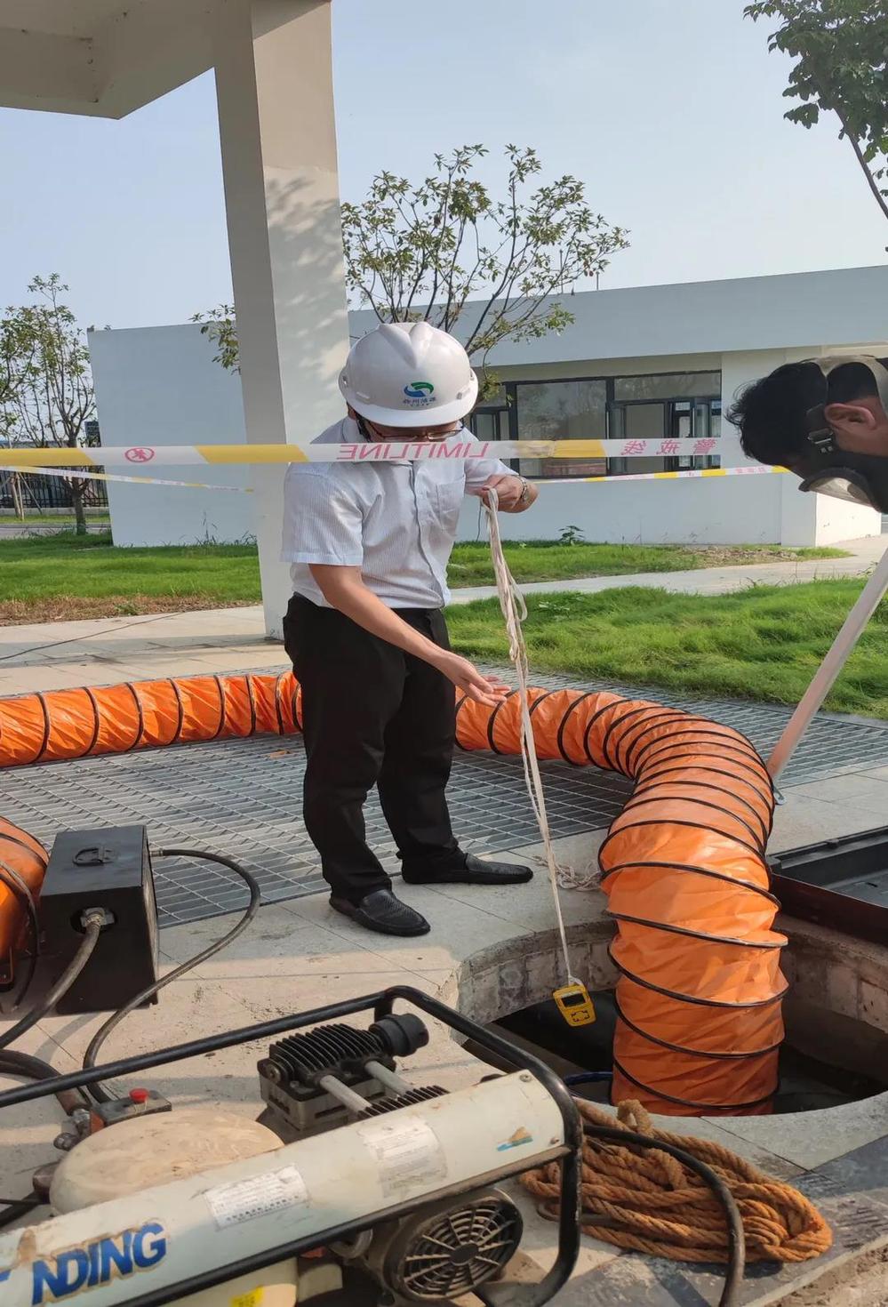 演練開始前,本次演練現(xiàn)場總指揮徐祝給大家講解了本次演練程序和安全注意事項及本次演練使用應急裝備的功能。隨后演練人員開始進行有限空間作業(yè)事故應急救援演練和防汛應急演練。
