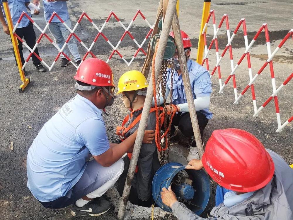 為切實做好安全生產(chǎn)工作,進一步提高有限空間作業(yè)突發(fā)事件應急處置水平,6月30日下午,萬福公司組織開展“有限空間作業(yè)突發(fā)事件”應急救援演練活動。萬福公司安全總監(jiān)、工程管理負責人和三條快速路項目安全管理人員參加活動。