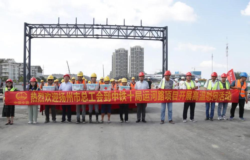 7月22日,揚州市總工會兼職副主席、市人社局副局長王錦程,揚州市總工會副調(diào)研員樊秉強一行先后來到潤揚快速路和運河快速路施工現(xiàn)場,走訪慰問高溫下堅守一線的施工人員。市總工會勞動和經(jīng)濟工作部部長賀光明、副部長周飛,市建設(shè)產(chǎn)業(yè)工會主任范華陪同慰問。城控集團副總經(jīng)理季紅軍、萬福公司主要負責(zé)人參加了慰問。