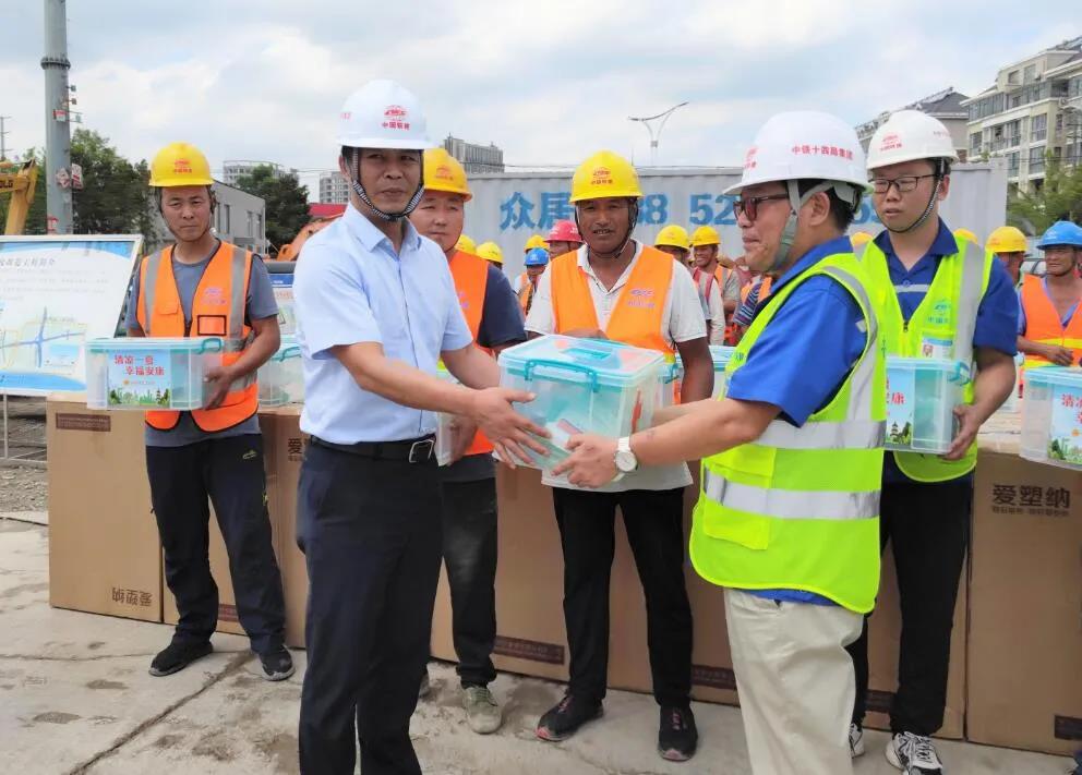 在慰問現(xiàn)場,王錦程一行在認真了解了項目建設(shè)情況后,代表市總工會向一線施工人員付出的辛勤勞動表示了感謝,為他們發(fā)放了防暑降溫慰問品和安全生產(chǎn)法手冊,要求施工單位嚴格落實現(xiàn)場保護措施,合理安排作業(yè)時間,切實做好防暑降溫工作,時刻把人員健康和安全生產(chǎn)放在首位。同時,鼓勵施工人員再接再厲,繼續(xù)保持昂揚的斗志,發(fā)揚不怕吃苦的精神,確保工程按序時保質(zhì)保量完成。