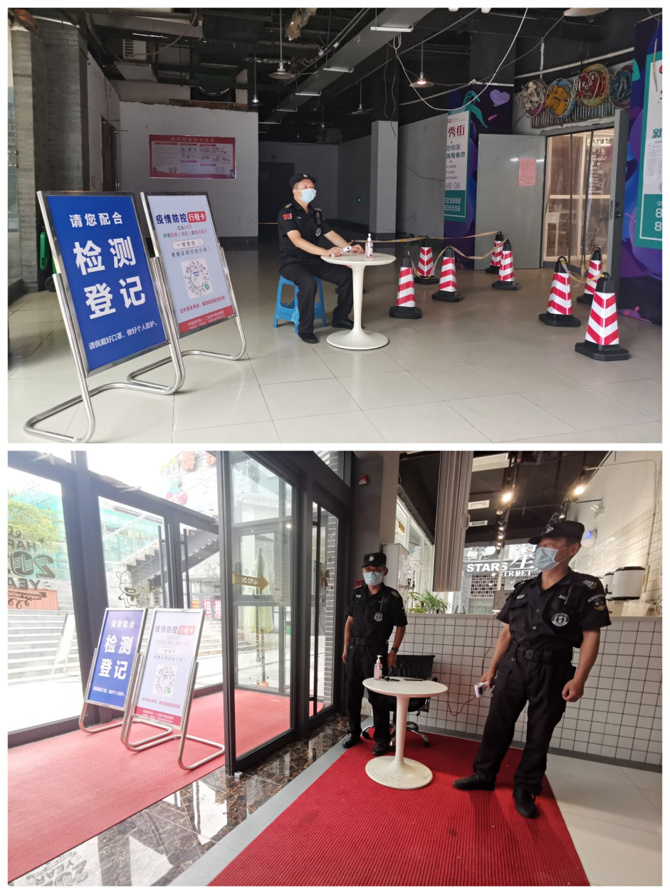 全面實(shí)行出入嚴(yán)格管控,根據(jù)街區(qū)情況合理設(shè)置出入管控口,立即關(guān)閉星秀街部分出入口,對(duì)進(jìn)出街區(qū)的顧客進(jìn)行測(cè)溫、健康碼核實(shí)、登記,嚴(yán)格排查外來人員的信息,并及時(shí)提醒大家佩戴好口罩,做好個(gè)人防護(hù)。