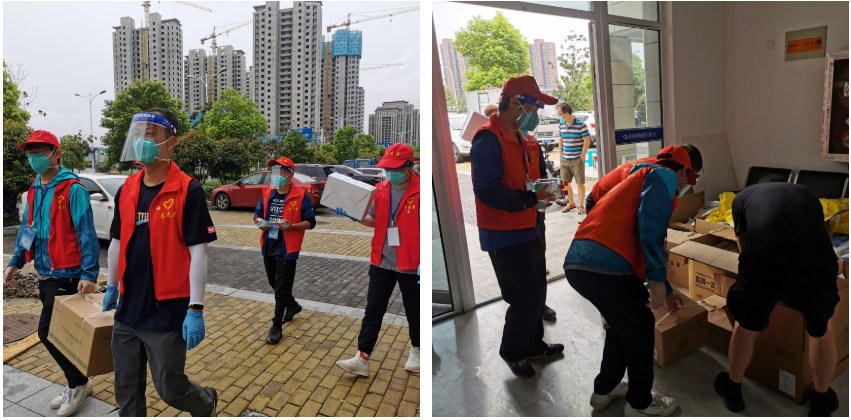 社區(qū)工作者因運送居民物資右腿摔傷骨折,應(yīng)急車輛又調(diào)用他處,我們主動幫忙,用個人車輛運送傷者醫(yī)院就醫(yī);部分社區(qū)工作人員因疫情防控要求定點管理不能回家,志愿者個人為其贈送換洗衣服;志愿服務(wù)時候,社區(qū)工作者總是搶著干最重的活,囑咐我們多休息;執(zhí)勤時間較晚的時候主動為我們免費訂送盒飯等等。就這樣,在嚴峻的疫情形勢下,有兩股力量相互交融,擰成一股繩,同舟共濟、共渡難關(guān)。
