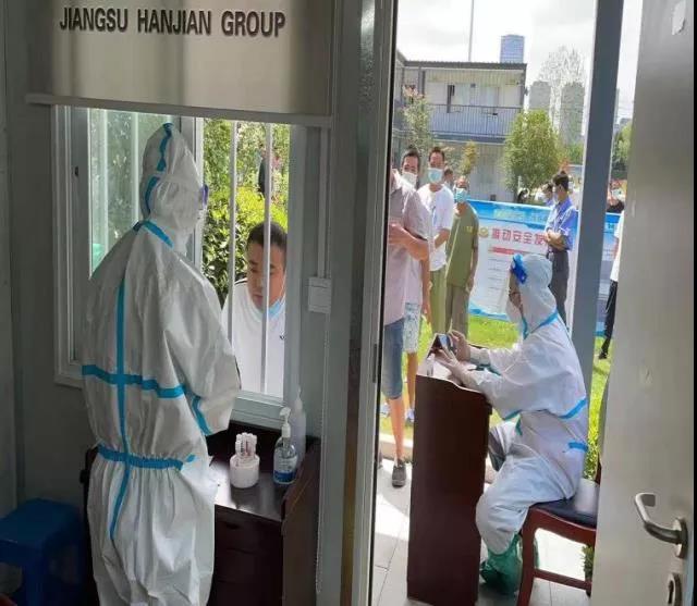 2.有序組織全員原地核酸檢測。為防止人員核酸檢測時(shí)發(fā)生交叉感染,項(xiàng)目部與屬地主管部門積極溝通,由醫(yī)護(hù)人員進(jìn)入工地進(jìn)行核酸檢測,檢測過程中,各標(biāo)段至少安排5名以上管理人員配合核酸檢測秩序維持等工作,確保民工全員檢測,一個(gè)不漏,檢測完畢,立刻進(jìn)行全面消殺。工地內(nèi)辦公區(qū)、生活區(qū)、食堂區(qū)每天兩次安排專人消毒并設(shè)置隔離區(qū),一旦發(fā)現(xiàn)有發(fā)熱、咳嗽等癥狀立即進(jìn)行隔離并匯報(bào)相關(guān)部門。