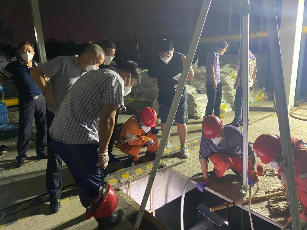 8月29日凌晨,一段急促的電話鈴聲打斷了蔣宏根的休息,原來是湯汪廠加藥間一組PAC投加裝置突然發(fā)生故障,無法正常運(yùn)行。蔣宏根立刻聯(lián)系自控主管張傳標(biāo),帶上工具迅速趕往現(xiàn)場(chǎng)。藥劑能否穩(wěn)定投加直接關(guān)系出水質(zhì)量,他們?cè)谧龊梅酪弑Wo(hù)措施后,分頭行動(dòng),抓緊排查故障原因,制定了詳細(xì)的維修方案,經(jīng)過3個(gè)小時(shí)的緊張維修,故障得以順利排除。維修結(jié)束后,汗水浸透了他們的衣衫,他們沒有一個(gè)人喊苦叫累。