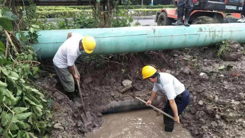 作為資深鄉(xiāng)鎮(zhèn)測漏員,杭寶慶經(jīng)過半天時間的仔細(xì)巡查,發(fā)現(xiàn)是吉安路DN300管道破損造成的漏水,隨即他便著手準(zhǔn)備開展搶修。但此處漏點位于路基下方的草叢深處,且上方有其他管線并行,土方開挖難度高、工作量大,需要專業(yè)機(jī)械進(jìn)場作業(yè),而特殊時期的封閉管控政策,給人員和機(jī)械的進(jìn)場帶來困難。通過不斷努力,搶修隊員聯(lián)系到高新區(qū)政府工作人員,在對方的協(xié)助和指引下,按規(guī)范辦理好搶修人員和工程機(jī)械通行證,大家終于長吁一口氣,此時已是晚上六點。