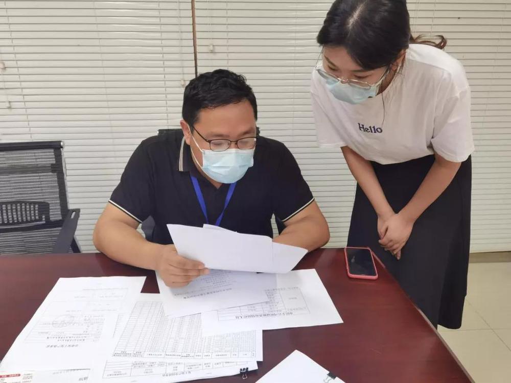 (竹西街道工作人員實(shí)地檢查市民卡公司復(fù)工復(fù)產(chǎn)情況與臺賬資料)