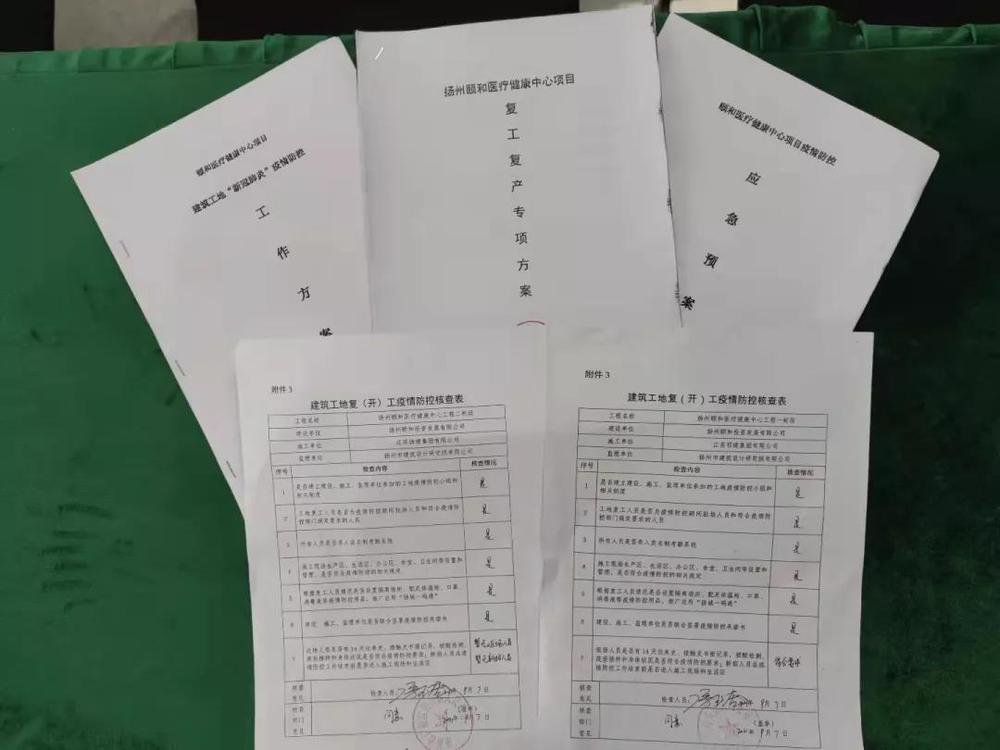 近日,置業(yè)公司積極與集團(tuán)各主管部門進(jìn)行對(duì)接,頤和項(xiàng)目部迅速籌備相關(guān)資料,梳理現(xiàn)場材料,組織施工人員,組織對(duì)現(xiàn)場塔吊、人貨電梯等大型設(shè)備的維護(hù)保養(yǎng),并開展了疫情安全教育培訓(xùn)和現(xiàn)場安全防疫全面檢查。9月6日,通過了屬地政府防疫核查。9月7日,項(xiàng)目一、二標(biāo)段均通過了江蘇省安監(jiān)平臺(tái)的網(wǎng)上復(fù)工審核,順利實(shí)現(xiàn)復(fù)工復(fù)產(chǎn)!