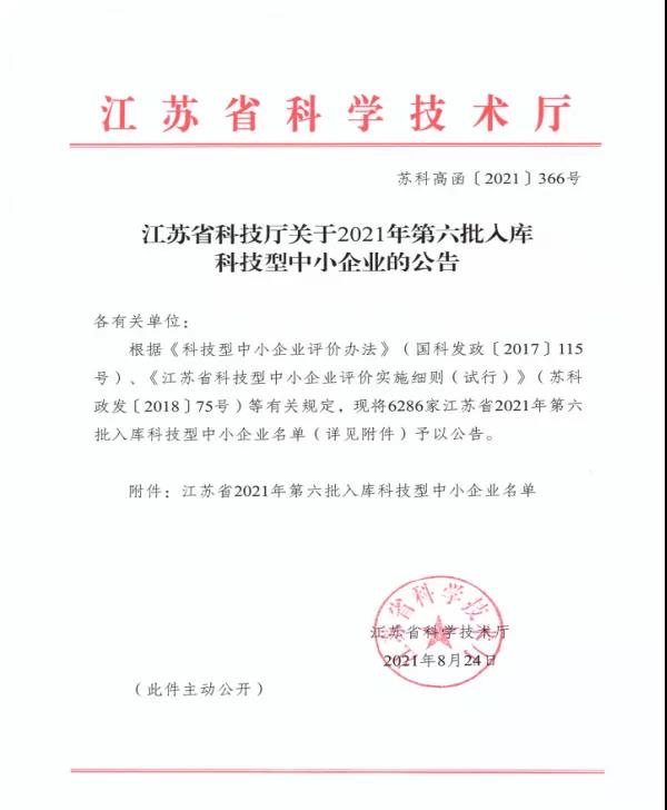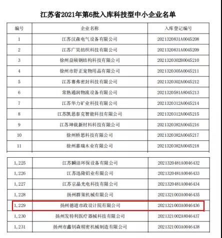 近日,從江蘇省科學技術(shù)廳傳來好消息,公用控股德道設(shè)計院順利通過審核,成功進入江蘇省2021年科技型中小企業(yè)庫。
