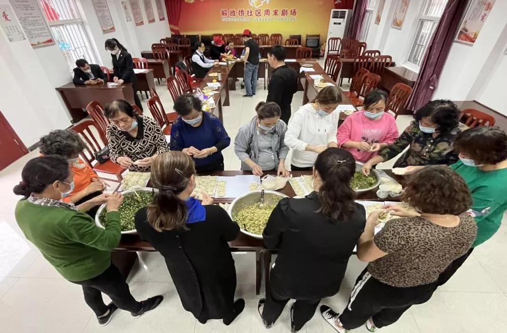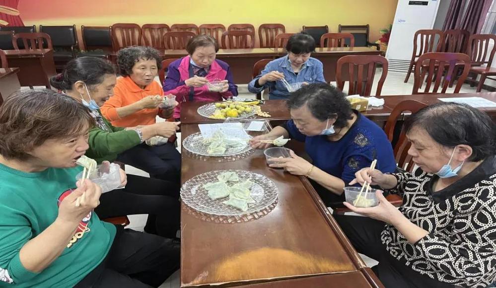 活動中,支部與社區(qū)老人共同包餃子,20余人齊聚社區(qū)活動室,擺放桌子,搭建面板,建起了臨時鍋臺。有揉面的,有搟皮的,有包餃子的,邊干活邊拉家常,快樂洋溢在每個人臉上。一個小時左右,熱騰騰的水餃出鍋了。老人們團(tuán)團(tuán)圍坐,有滋有味地品嘗著餃子和重陽糕,一張張溫馨笑臉、一聲聲親切問候,伴隨著一碗碗熱騰騰的餃子,烘托了與社區(qū)“鄰里相親慶重陽”的節(jié)日氣氛,志愿者用實(shí)際行動祝福解放橋社區(qū)老人們身體健康,幸福久久!