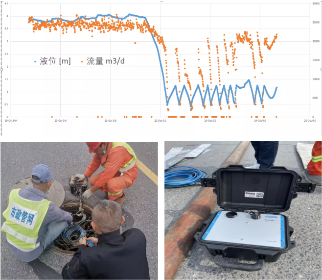 宏溪路泵站所覆蓋的污水收集區(qū)域由G328國道-趙家支溝-儀揚河-潤揚南路合圍而成,總面積約5平方公里,市政管網(wǎng)公司于2021年6月啟動揚州高新區(qū)市政道路污水管網(wǎng)疏通養(yǎng)護(hù)工程,在現(xiàn)場排查過程中發(fā)現(xiàn),該區(qū)域市政道路管網(wǎng)存在污水運行液位高、流速快、雨污混接點多等特點,為精確分析、計算區(qū)域外水情況,科研小組采用國際先進(jìn)的區(qū)域降雨量、管道污水流量、及UV-COD水質(zhì)在線監(jiān)測技術(shù),對試點范圍內(nèi)降雨情況、污水管網(wǎng)運行情況、污水水質(zhì)進(jìn)行監(jiān)測、同時結(jié)合宏溪路泵站運行情況,區(qū)域內(nèi)居民小區(qū)、個體工商戶、企業(yè)的用水量等基礎(chǔ)數(shù)據(jù)進(jìn)行比對、分析,發(fā)現(xiàn)該區(qū)域旱天污水流量約為2.5萬噸/天且COD濃度值很低,考慮到區(qū)域內(nèi)居民及工業(yè)用水量僅為約6千噸/天,因此推算區(qū)域外水量約為1.9萬噸/天。隨后,科研小組依托地理信息系統(tǒng)(GIS),污水管網(wǎng)及河道水力模型縮小區(qū)域內(nèi)外水排查范圍,對存在疑似外水入侵的路段管網(wǎng)及檢查井進(jìn)行污水取樣分析,鎖定三處疑似外水入侵點(銀柏路WS165032井段、祥園路WS176031井段以及銀河路WS167031-1井段),并對以上井段進(jìn)行閉水試驗查找外水進(jìn)入源頭,由于試驗管段內(nèi)水位下降緩慢,同時河道無水流異常,故判定以上三處疑似點位無外水入侵。通過進(jìn)一步溯源排查,科研小組發(fā)現(xiàn)外水入侵主要為在前期市政道路污水管網(wǎng)疏通養(yǎng)護(hù)過程中發(fā)現(xiàn)的4處雨污混接點,在完成以上4處雨污混接點處置修復(fù)工作后,宏溪路泵站日污水凈流量約6千噸/天,較修復(fù)前明顯下降,擠出外水約1.9萬噸/天,污水濃度也得到顯著提升,按照污水處理噸水成本1.6元計算,可以為污水處理廠節(jié)省污水處理成本3萬元/天,年節(jié)省費用達(dá)1000多萬元。