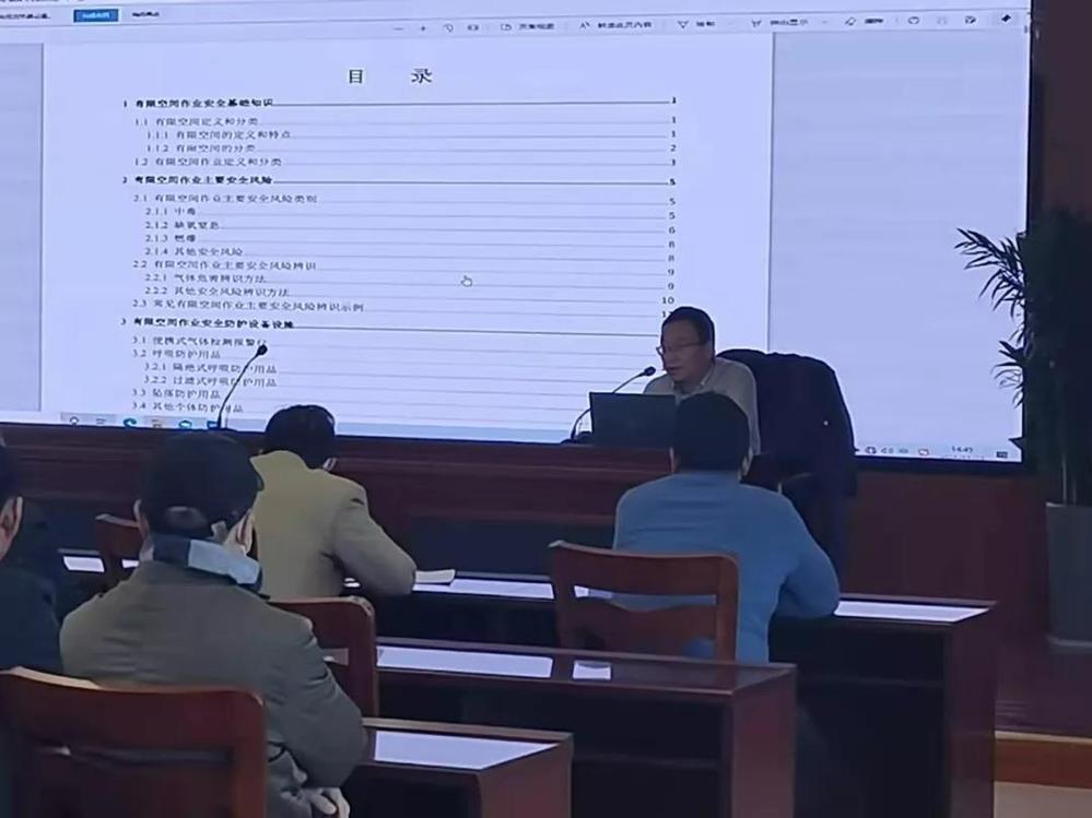 在培訓(xùn)中,安全保衛(wèi)處負(fù)責(zé)人向大家進行了有限空間安全作業(yè)的培訓(xùn),通過事故案例的講解,結(jié)合現(xiàn)行法律、法規(guī)和公司相關(guān)管理制度,從有限空間的基本要求、危害因素、作業(yè)管理和應(yīng)急處置等方面進行了詳細(xì)講解。培訓(xùn)結(jié)束后,全體參加培訓(xùn)人員進行了閉卷考核。