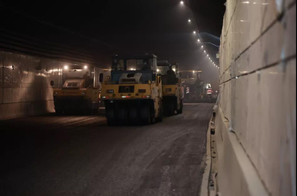12月4日下午2時,經(jīng)過31個小時的奮戰(zhàn),運河快速路萬福西路隧道西半幅主線瀝青路面順利攤鋪,標(biāo)志著萬福西路隧道瀝青攤鋪工作全部完成,為實現(xiàn)運河快速路年底前全線通車的目標(biāo)奠定了堅實的基礎(chǔ)。