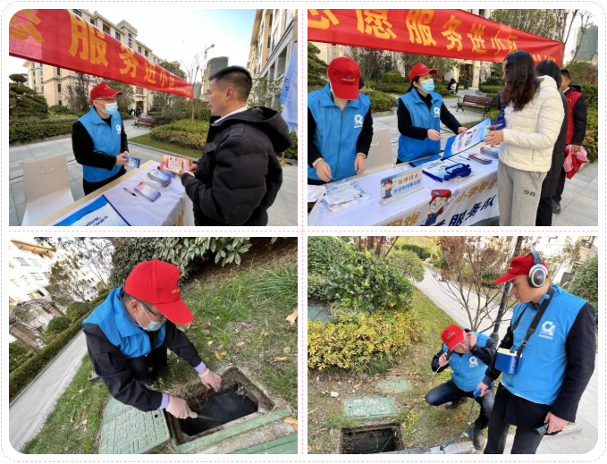 活動(dòng)現(xiàn)場黨員志愿者們向社區(qū)居民介紹冬季供水設(shè)施防寒保溫的方法,介紹了家庭用水設(shè)施防凍化凍的一些常識(shí)和技巧,向用戶發(fā)放供水服務(wù)指南和冬季防凍“友情提醒”宣傳單。小李服務(wù)隊(duì)的黨員志愿者們分成幾個(gè)小組,在小區(qū)內(nèi)的水表井、閘門井內(nèi)鋪設(shè)保溫棉,做好保溫措施,并對(duì)需要上門服務(wù)的特殊用戶進(jìn)行登記,及時(shí)解決用水困難。老兵測漏隊(duì)的同志們對(duì)小區(qū)內(nèi)的管道、消防栓及閘門的防凍、保溫情況進(jìn)行巡查,消除冬季用水隱患。