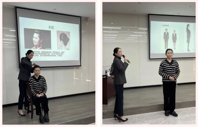 培訓(xùn)現(xiàn)場,陳老師以圖文并茂的方式,借助大量案例,深入淺出、通俗易懂地為學(xué)員講解儀表著裝、交往舉止、溝通禮儀等方面知識(shí)和技巧。在實(shí)操演練過程中,陳老師將學(xué)員請(qǐng)到臺(tái)前,模擬服務(wù)現(xiàn)場場景,針對(duì)學(xué)員在服務(wù)過程中出現(xiàn)的問題,一一指出并糾正。