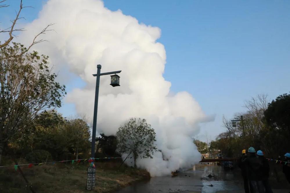 為確保吹掃工作安全順利進(jìn)行,供熱公司提前制定供熱管道吹掃技術(shù)方案并進(jìn)行模擬操作。15:00,隨著閥門緩緩打開,一股蒸汽噴薄而出,市區(qū)北部主干線(一期)工程管道吹掃正式開始。市區(qū)北部主干線(一期)工程吹掃作業(yè)的圓滿完成,標(biāo)志著該工程具備投運條件,為實現(xiàn)揚州市區(qū)管網(wǎng)“互聯(lián)互通”奠定了堅實的基礎(chǔ)。