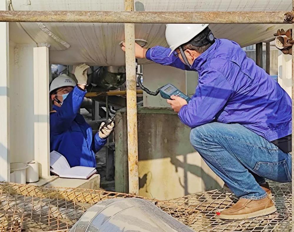 冬季保供特殊時期確保生產安全和保供安全更加重要。揚州中燃楊廟天然氣儲備站于2018年11月投入使用,在近幾年的冬季天然氣保供任務中發(fā)揮了巨大的作用。2021年12月11日起,揚州中燃按照《特種設備安全法》規(guī)定的要求,對楊廟儲備站站區(qū)內壓力容器、管道等特種設備進行了一次全面“體檢”。LNG儲罐罐體壁厚檢測、真空度檢查、罐體與壓力管道20%焊縫的超聲波、磁粉抽檢以及管道單線圖繪制等,每道檢查工序在市特檢院“醫(yī)生”手中有條不紊的進行著。