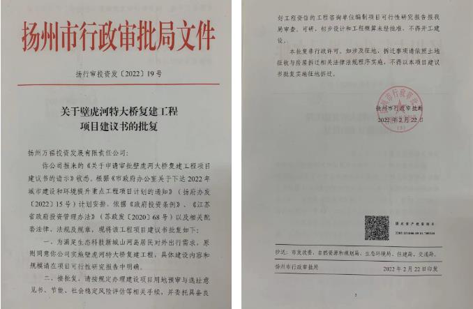 原壁虎大橋始建于1991年,橋長(zhǎng)約226米,橋面全寬約6.1米,通行載重10噸。2021年9月,被一列失控船隊(duì)撞擊,約百米長(zhǎng)的橋面塌入水中。事故發(fā)生后,市委、市政府領(lǐng)導(dǎo)高度重視并作出批示,需盡快保證山河島居民出行,目前已建成一座臨時(shí)鋼便橋,使用年限為2年。為長(zhǎng)久改善島上居民出行、帶動(dòng)灣頭古鎮(zhèn)與山河島旅游經(jīng)濟(jì),根據(jù)市政府《關(guān)于下達(dá)2022年城市建設(shè)和環(huán)境提升重點(diǎn)工程項(xiàng)目計(jì)劃的通知》(揚(yáng)府辦發(fā)【2022】15號(hào))安排,由萬(wàn)福公司負(fù)責(zé)壁虎河特大橋復(fù)建工程的建設(shè)。