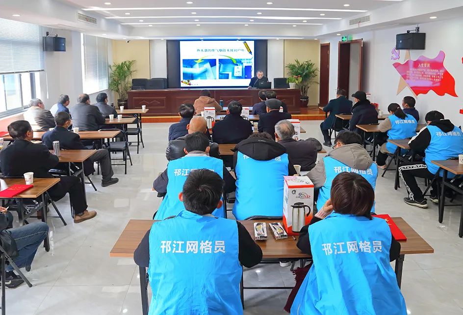 隨著“氣化鄉(xiāng)鎮(zhèn)”工程的大力推進(jìn),方巷鎮(zhèn)集中居住小區(qū)已開通管道天然氣。在社區(qū)會議室,藍(lán)焰衛(wèi)士為社區(qū)居民們播放安全事故宣傳視頻,圍繞“家庭用氣安全常識、室內(nèi)燃?xì)饩叩陌踩褂?、發(fā)現(xiàn)漏氣正確的處理方式和自我保護(hù)措施”等方面開展安全講座。針對市場上多次冒充揚州中燃的燃?xì)狻袄罟怼?,藍(lán)焰衛(wèi)士從如何辨別和拒絕、謹(jǐn)防上當(dāng)受騙的方法和技巧,對居民用戶們進(jìn)行了特別提醒。
