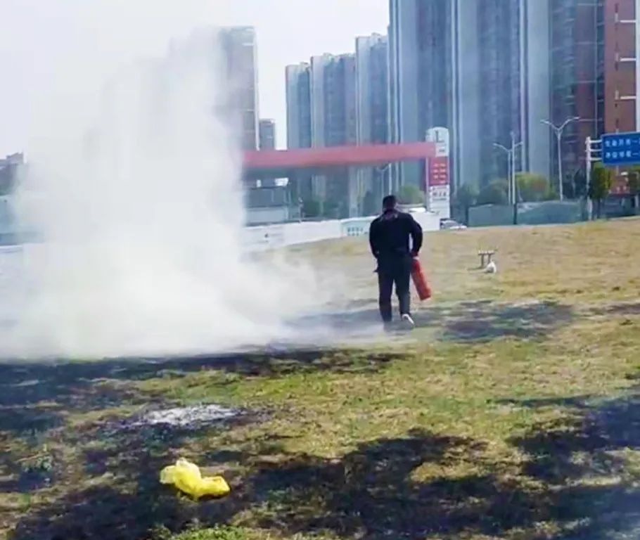 當(dāng)天上午11時(shí)許,聯(lián)誼站班長(zhǎng)王俊玉正在站內(nèi)例行巡查,突然發(fā)現(xiàn)壓縮機(jī)房南側(cè)圍墻外濃煙滾滾,立即去現(xiàn)場(chǎng)查看,原來(lái)是一位老人燒紙祭祖不當(dāng),引燃了公共區(qū)域草坪。因近期天氣干燥,火勢(shì)如果繼續(xù)蔓延勢(shì)必影響草坪北側(cè)的我公司加氣站和東側(cè)加油站的安全運(yùn)營(yíng)?;鹎榫褪敲睿蹩∮褚贿呏笓]員工取滅火器滅火,一邊撥打110、119報(bào)警。老人見燒紙引發(fā)火情頓時(shí)緊張,不知所措,癱坐在地上,王俊玉迅速架起老人帶離火場(chǎng)。車用氣當(dāng)班員工胡松等人,憑著多年應(yīng)急演練積累的的消防知識(shí)和經(jīng)驗(yàn),在確保自身安全的前提下,果斷撲救,共使用了4只滅火器,用時(shí)約10分鐘及時(shí)成功滅火。因快速反應(yīng)、指揮得當(dāng)、處置迅速、報(bào)警及時(shí)未造成更大危害。