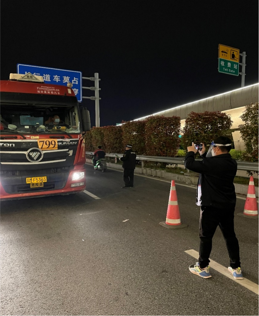 (生產(chǎn)運(yùn)行處薛超,在六圩高速口給藥劑車輛拍照,做到卡口有人接,行程有人跟)