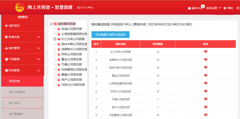 加強組織建設(shè),夯實團(tuán)青工作基礎(chǔ)。堅持“黨建帶團(tuán)建”工作機制,加強團(tuán)組織基礎(chǔ)建設(shè)。一是做好團(tuán)青摸底工作,對集團(tuán)系統(tǒng)內(nèi)青年工作情況做到心中有數(shù);二是明確專人做好智慧團(tuán)建系統(tǒng)錄入工作,確保團(tuán)青工作實現(xiàn)動態(tài)化管理;三是指導(dǎo)符合條件的子公司成立團(tuán)支部,并配齊配強了人員力量,不斷完善團(tuán)的組織體系。