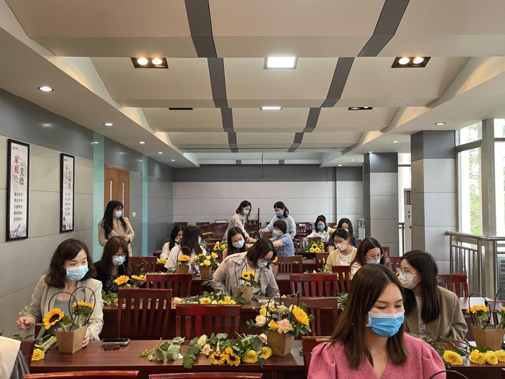 素手拈花,觸感花草的爛漫;細(xì)嗅花香,輕摘日子的詩意。當(dāng)鮮花與生活相遇,帶來的不僅是感官上的愉悅,更是心靈上的享受?;顒?dòng)中,花藝?yán)蠋熤v解了插花的基本概念,并以主要的插花造型闡述插花藝術(shù)的內(nèi)涵、插花藝術(shù)的要領(lǐng)及插花藝術(shù)的特點(diǎn)等知識(shí),同時(shí)采用現(xiàn)場(chǎng)演示與實(shí)際操作相結(jié)合的形式進(jìn)行互動(dòng)。職工們跟著老師的節(jié)奏,邊聽邊學(xué)邊動(dòng)手,并由老師從旁指點(diǎn),指出不足加以完善。想象力和創(chuàng)造力在手指尖激活,大家全身心投入插花創(chuàng)作中。經(jīng)過一個(gè)多小時(shí)的創(chuàng)作,一件件花樣各異、絢爛繽紛的花藝作品完美呈現(xiàn),笑容如手中花籃中的花兒一樣綻放。