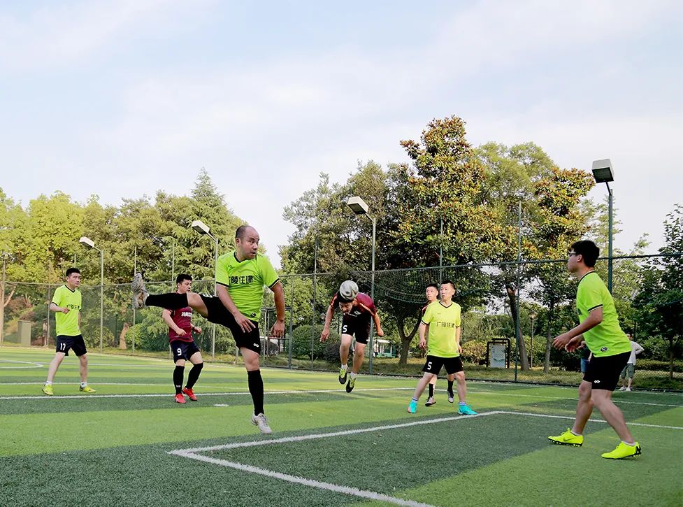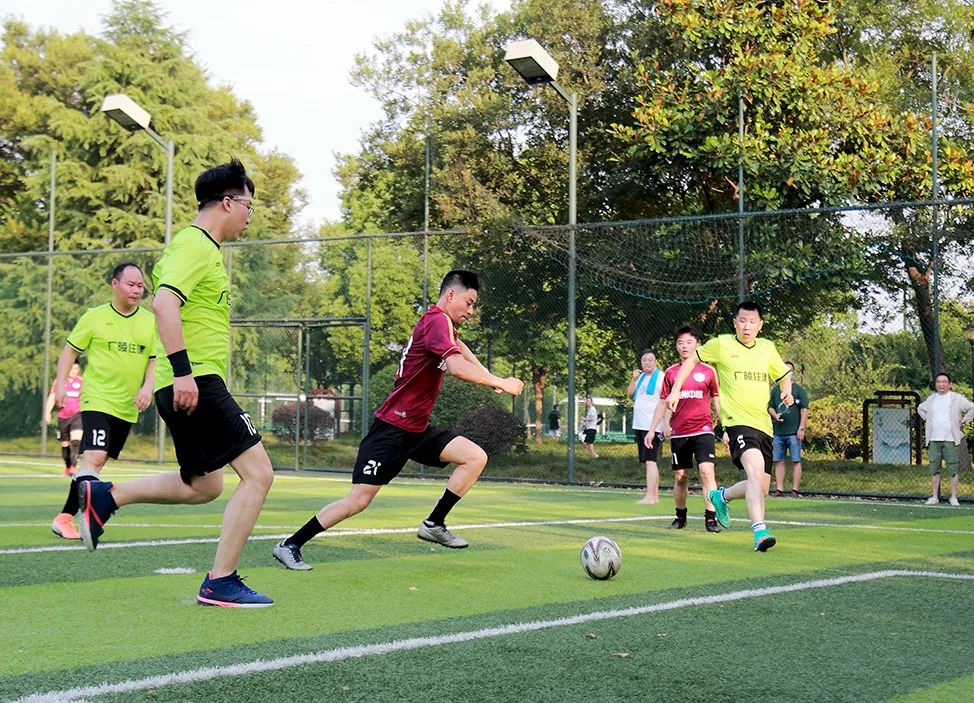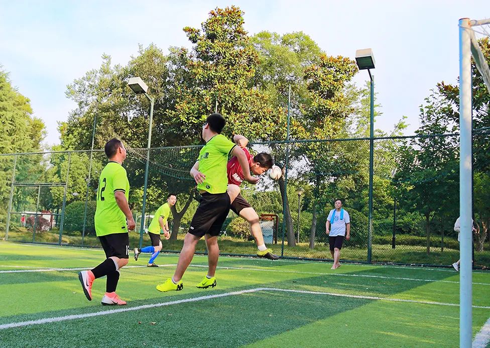 比賽采用7人制賽制, 上下半場各三十分鐘。隨著裁判一聲哨響,隊(duì)員克服高溫對體能帶來的影響,立刻開始了猛烈的進(jìn)攻,以細(xì)膩的腳法、默契的配合、攻防兼?zhèn)涞年?duì)形使比賽很快進(jìn)入白熱化狀態(tài)。球場上,雙方你來我往,激情四射,時(shí)而帶球、傳切、過人、狂奔、抽射,時(shí)而呼喚隊(duì)友、相互鼓勵(lì)、擊掌慶賀,發(fā)揮出了較高的技戰(zhàn)術(shù)水平。比賽始終在激烈友好的氣氛中進(jìn)行,展現(xiàn)了隊(duì)員們拼搏向上、勇爭第一的精神風(fēng)貌。