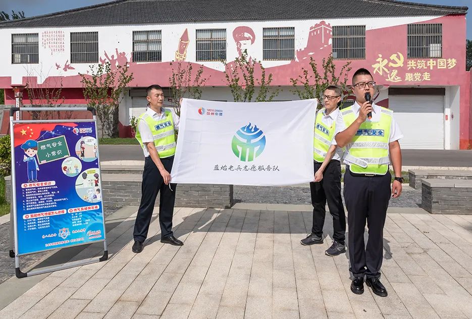 在展館廣場,雙方的退役老兵代表們面對黨旗行莊嚴軍禮,重唱鏗鏘軍歌,《我是一個兵》《打靶歸來》的高亢旋律響徹云霄,表達了退役老兵們退伍不褪色、永葆軍人本色,在平凡的崗位上為國家建設盡綿薄之力的豪邁心情?;顒蝇F(xiàn)場,“藍焰老兵”還開展了安全使用天然氣專題宣講,發(fā)放天然氣安全使用手冊。