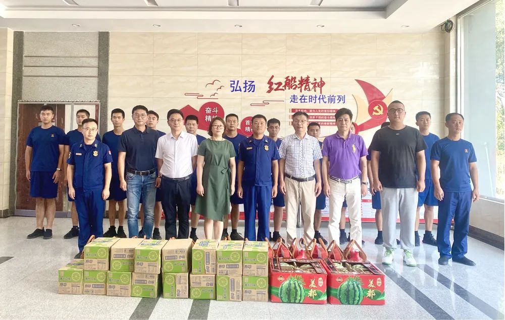 8月1日下午,揚州公用控股集團有限公司領導班子一行,前往邗江區(qū)新盛消防中隊,慰問高溫奮斗在應急搶險救援一線的消防隊員們,為他們送去消暑用品。