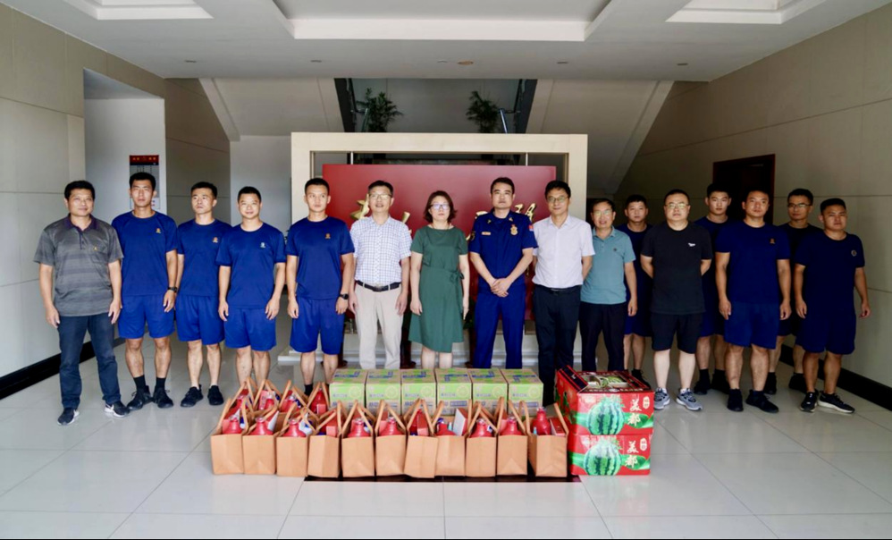 公司一行親切地慰問了消防隊員,參觀了消防隊員的訓練場地,了解隊員們的日常訓練及消防設施設備等運行情況,認真學習了在事故預防、隱患排查、搶險救援等方面的優(yōu)良經驗。消防隊員感謝大家對消防救援工作的關心和支持。保護人民群眾生命財產安全是消防救援隊伍的神圣職責,他們一定不負人民重托,戰(zhàn)高溫、斗酷暑,始終奮戰(zhàn)在搶險救援第一線,為群眾安居樂業(yè)保駕護航。