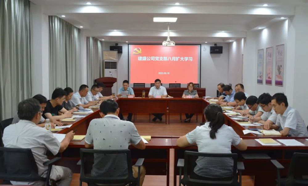 8月18日下午,建盛公司黨支部召開支部(擴大)學習會。公司領(lǐng)導班子成員、中層干部、全體黨員和入黨積極分子參加會議。