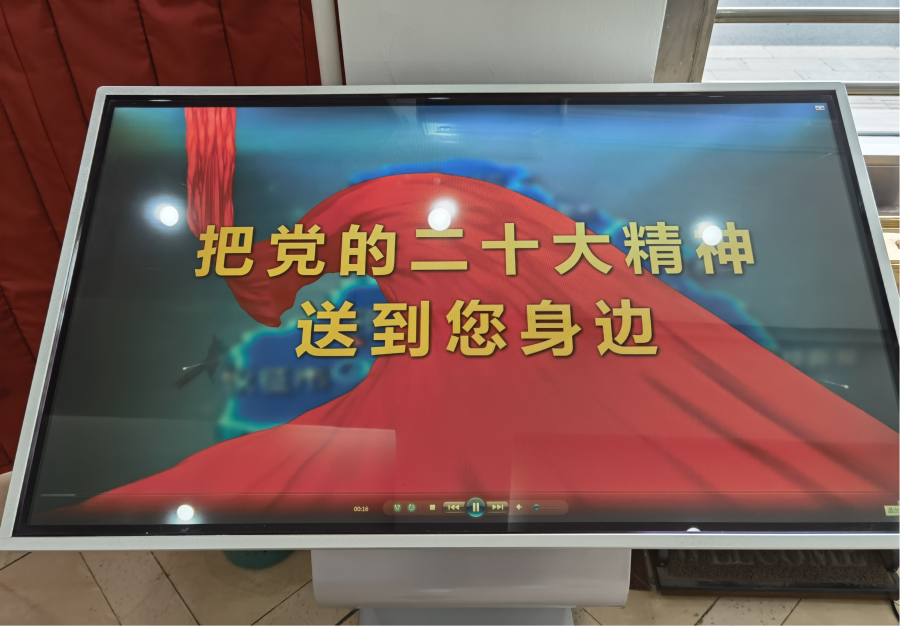 各子公司、生產(chǎn)廠(站)和營(yíng)業(yè)廳利用LED顯示屏、大廳電視屏幕滾動(dòng)播放市文明辦錄制的《關(guān)鍵詞:大會(huì)主題》等8個(gè)視頻,把黨的二十大精神送到職工身邊。