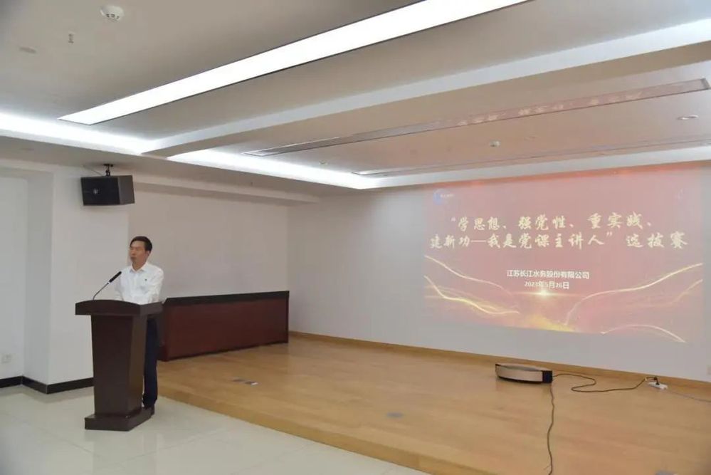 為深入學習宣講習近平新時代中國特色社會主義思想和黨的二十大精神,進一步統(tǒng)一思想、振奮精神、凝聚力量,激勵廣大干部職工在強國復興之路上追夢奮進,為全面推進中國式現(xiàn)代化揚州新實踐貢獻力量,5月26日下午,長江水務(wù)開展“學思想、強黨性、重實踐、建新功——我是黨課主講人”賽黨課活動。長江水務(wù)公司領(lǐng)導班子成員、各支部書記及各支部黨員職工代表參加活動。
