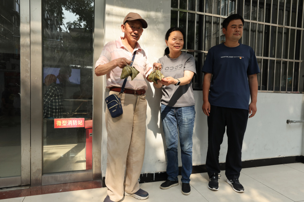 第三黨支部志愿者和社區(qū)工作人員分為兩組,將蒸煮好的近200個(gè)粽子分送到沙口社區(qū)困難家庭、獨(dú)居老人、重度殘疾人及孤寡老人家中,為他們送上慰問品及誠摯的節(jié)日祝福。