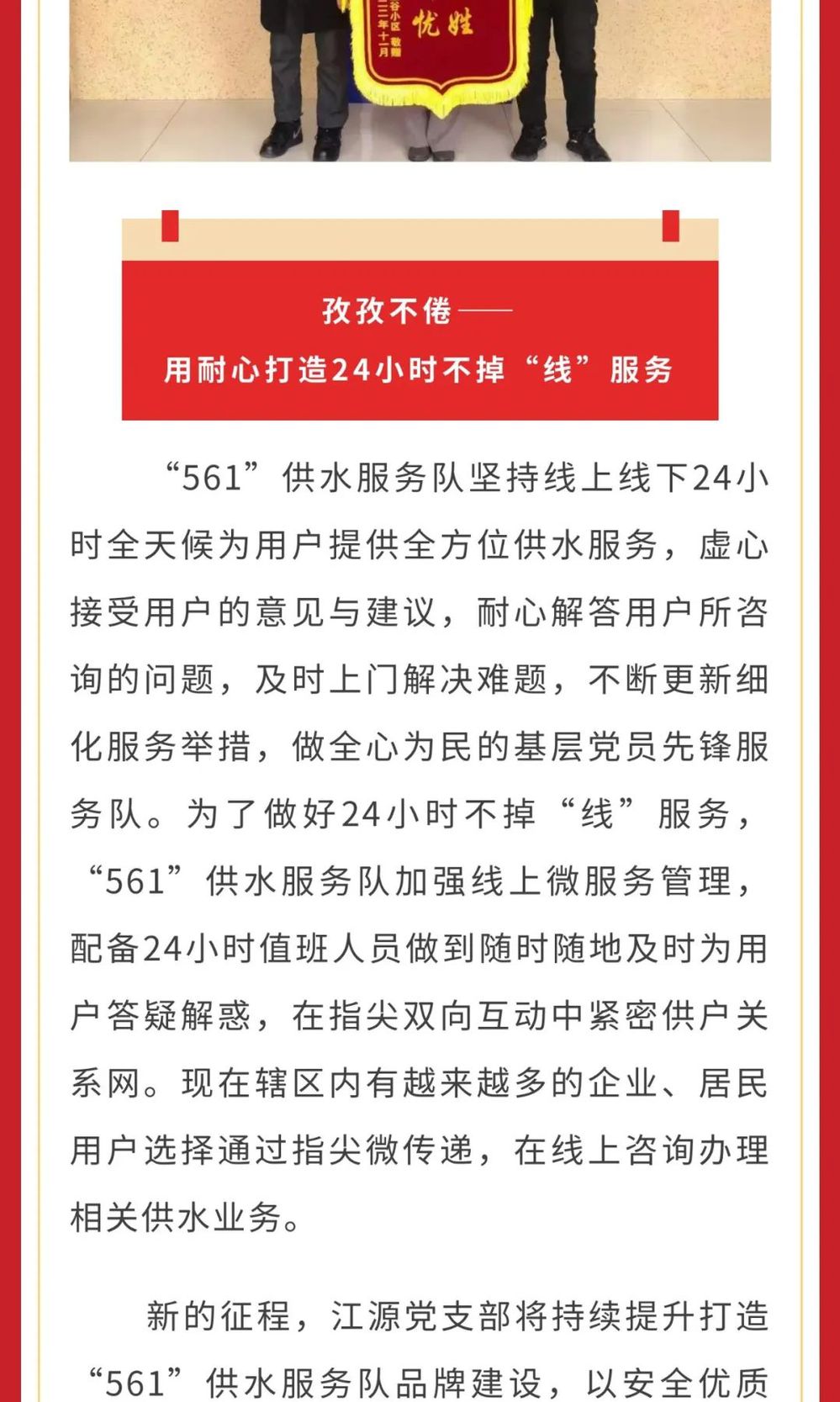 【慶“七一” 學(xué)先進(jìn)】扎根崗位講奉獻(xiàn) “六心”舉措訴初心——記集團(tuán)創(chuàng)建黨建品牌先進(jìn)單位 長江水務(wù)江源黨支部