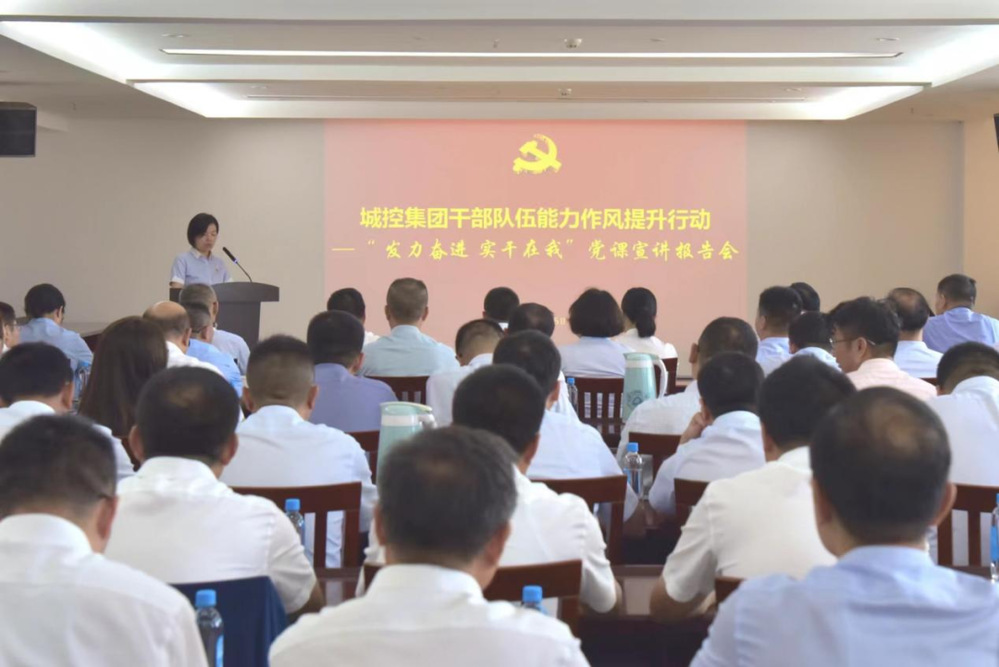 為進(jìn)一步推動習(xí)近平新時代中國特色社會主義思想深入基層、深入人心,切實(shí)提升集團(tuán)干部隊(duì)伍能力作風(fēng)建設(shè),激勵廣大干部職工干事創(chuàng)業(yè)貢獻(xiàn)新力量,8月15日下午,集團(tuán)在長江水務(wù)舉辦第三場“發(fā)力奮進(jìn) 實(shí)干在我”黨課宣講報告會。集團(tuán)黨委副書記徐飛,集團(tuán)黨委委員、長江水務(wù)黨委書記、董事長張正斌,集團(tuán)黨群部負(fù)責(zé)人,長江水務(wù)、公用控股、建盛公司領(lǐng)導(dǎo)班子成員,中層干部及黨員職工代表共計80余人參加活動。