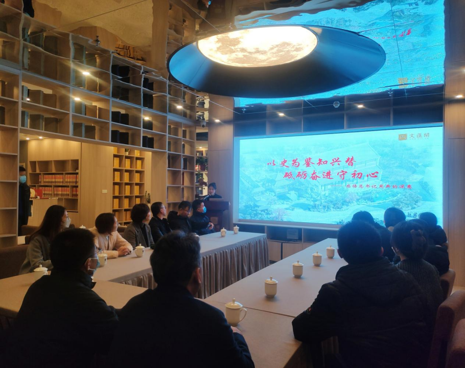 在講解員的帶領(lǐng)下,大家參觀了一樓歷史文化展陳區(qū),通過(guò)“依靠學(xué)習(xí),走向未來(lái)”主題學(xué)習(xí)平臺(tái),學(xué)習(xí)了“信念篇”“勸學(xué)篇”“修身篇”“齊家篇”“民本篇”“勤廉篇”六個(gè)篇章的相關(guān)內(nèi)容,學(xué)習(xí)感悟習(xí)近平總書(shū)記在系列重要講話中所引用的《四庫(kù)全書(shū)》中的經(jīng)典語(yǔ)句,深刻領(lǐng)悟習(xí)近平總書(shū)記關(guān)于黨風(fēng)廉政建設(shè)和反腐敗斗爭(zhēng)的重要論述。隨后,文匯閣青年黨員以《以史為鑒知興替 砥礪奮進(jìn)守初心》為題為大家上了一堂生動(dòng)的專題黨課。