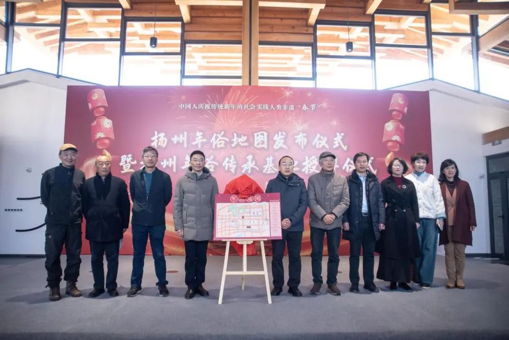 2025年1月10日上午,由揚(yáng)州年俗保護(hù)單位揚(yáng)州文藝家志愿者協(xié)會(huì)精心策劃的揚(yáng)州年俗地圖發(fā)布儀式暨揚(yáng)州年俗傳承基地授牌活動(dòng)在小秦淮劇場(chǎng)熱烈開啟,為即將到來的新春佳節(jié)奏響了激昂序曲,也為揚(yáng)州非物質(zhì)文化遺產(chǎn)傳承與發(fā)展注入了新的活力。揚(yáng)州市文聯(lián)黨組書記、文聯(lián)主席黃振宇、揚(yáng)州城控集團(tuán)黨委副書記徐飛、揚(yáng)州市委宣傳部原常務(wù)副部長李廣春、著名文化學(xué)者顧風(fēng)等嘉賓出席并授牌。